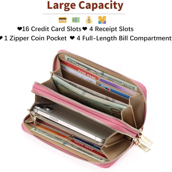 Women’s Wallet Large Capacity Double Zip Ladies Card Phone Holder Blocking Wristlet Leather