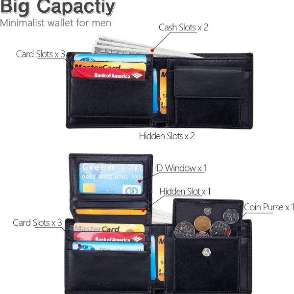Men’s Leather Wallet with Coin Pocket Flip Up ID Window Blocking Slim Bifold Credit Card Front Pocket Wallet (Black)